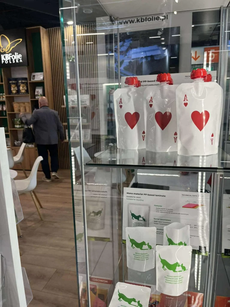 In diesem Jahr präsentierten wir unsere „grüne Serie“ von Mono-Material- und recyclingfähigen Lösungen auf Basis von Polyethylen (PE) und Polypropylen (PP) – darunter Strukturen für Pasteurisation und Sterilisation sowie eine hochbarrierische Kaffeeverpackung auf PE-Basis.